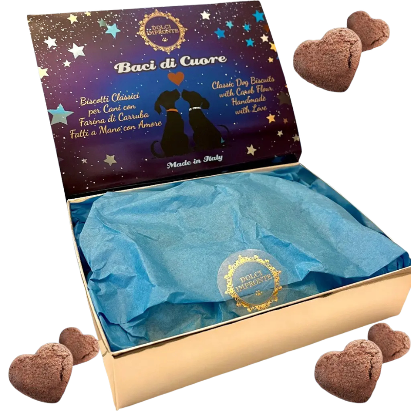 Ricorda di conservare il prodotto in un luogo fresco e asciutto dopo l’apertura per preservarne la fragranza originale. Con i Baci di Cuore, la qualità artigianale e il gusto naturale si uniscono per celebrare il legame speciale con il tuo compagno di vita.