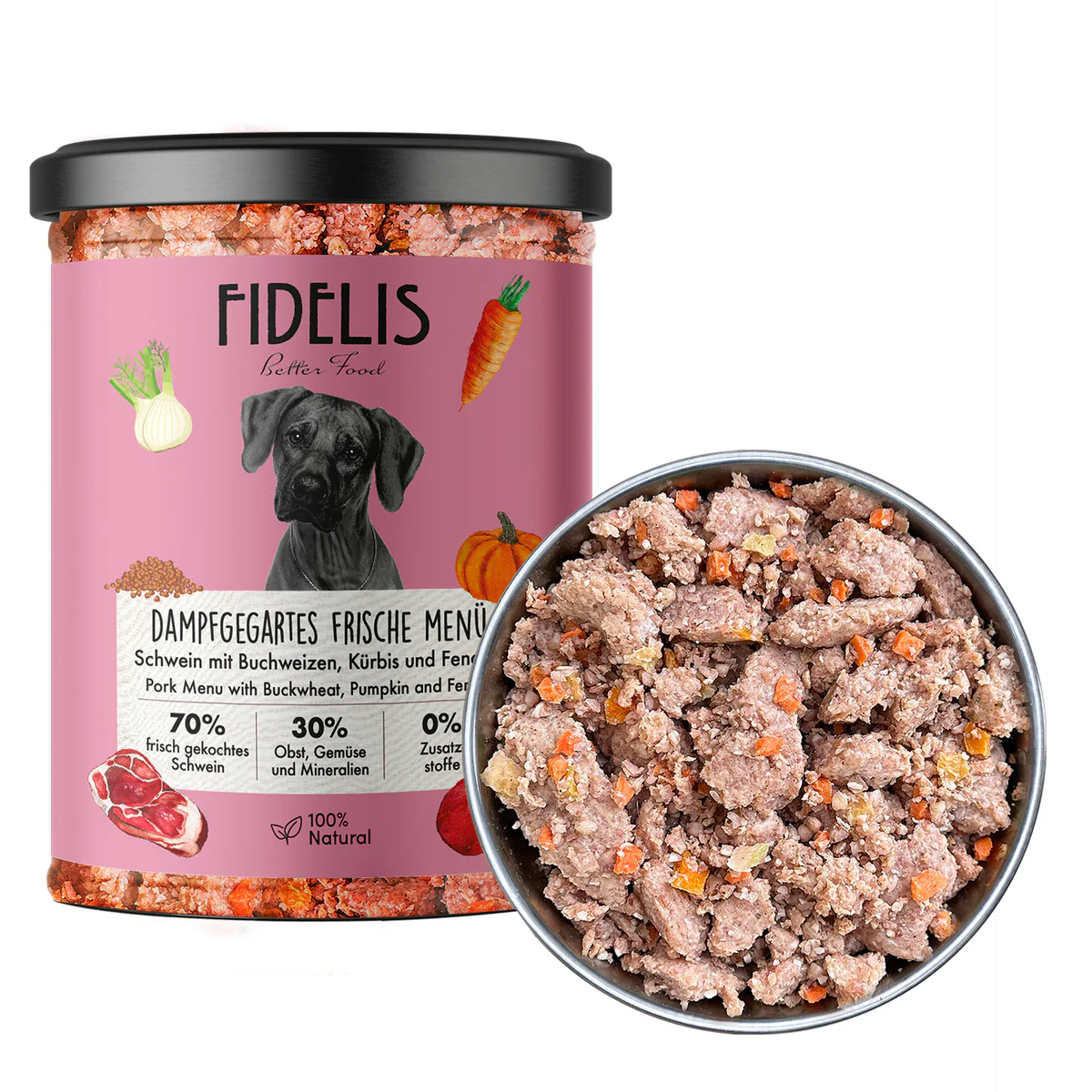 Aprire un vaso FIDELIS è come aprire un barattolo di conserva fatta in casa. Scopri i menu freschi pensati per chi desidera offrire al proprio cane un pasto naturale, altamente digeribile e privo di lavorazioni industriali aggressive. Perfetti per cani con problemi digestivi, Allergie o semplicemente per chi vuole nutrire il proprio pet con ingredienti veri.