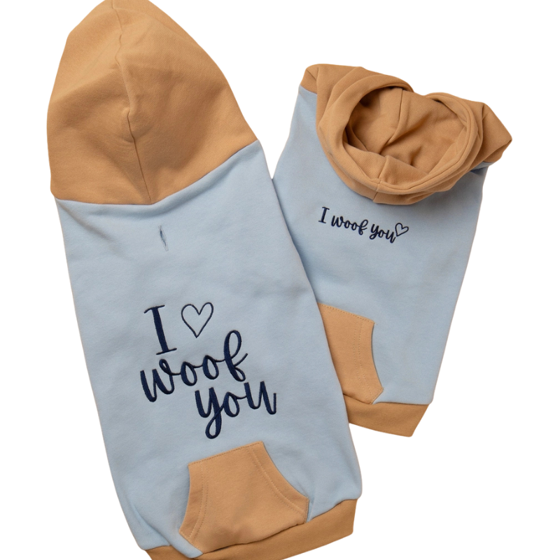 Dettagli “Instagrammabili” Il cappuccio sportivo, il taschino frontale (adorabile!) e il ricamo “I WOOF YOU” rendono questo capo irresistibile. È l’ideale per chi ama lo stile “matchy-matchy” e vuole che il proprio cane sia sempre alla moda.
