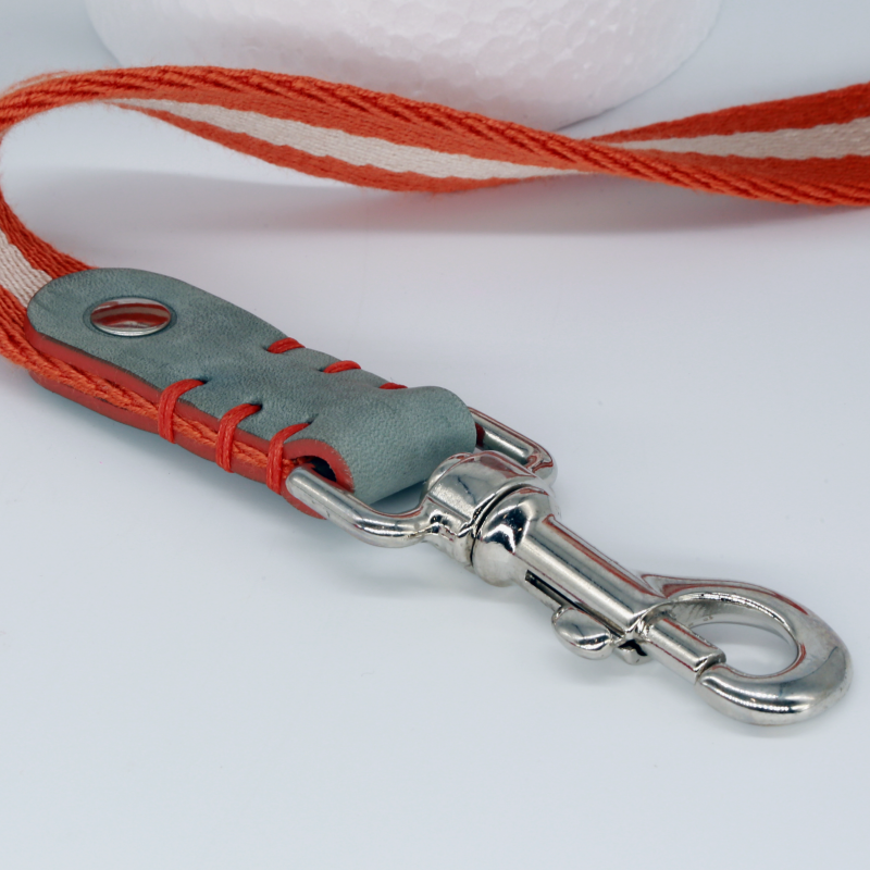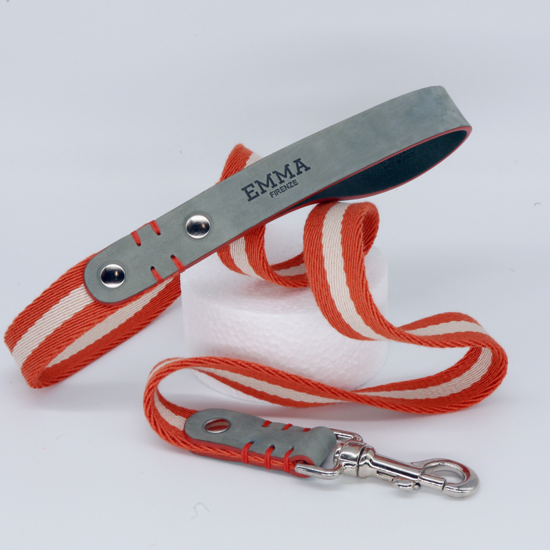 Guinzaglio in pelle intrecciata arancione e verde