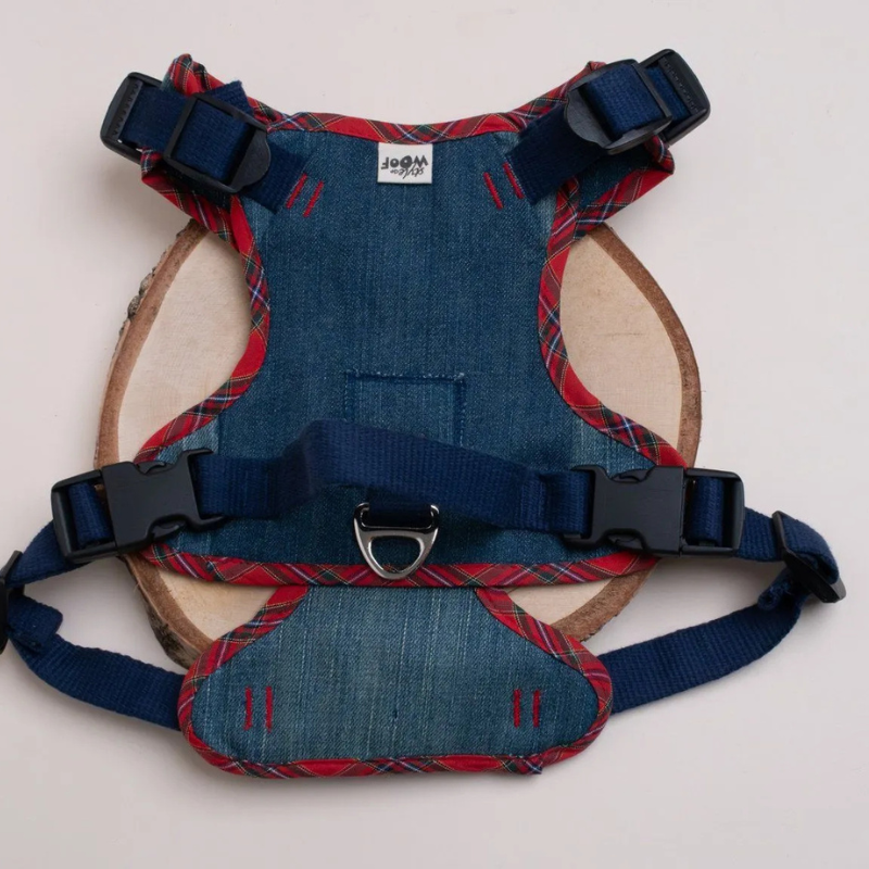 Dimentica le pettorine che sfregano o soffocano. L’imbracatura Style de Woof è progettata per offrire il massimo del comfort e del controllo, trasformando le passeggiate stressanti in momenti di piacere condiviso. Realizzata artigianalmente recuperando vero denim, ogni pezzo è unico, robusto e gentile sul pianeta.