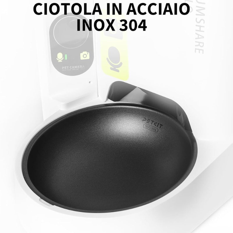 PETKIT Distributore Automatico Cibo per Gatti e Cani con Telecamera HD 1080P, WiFi 2.4G, 3L, Fino a 5 Pasti al Giorno, Ciotola in Acciaio Inossidabile