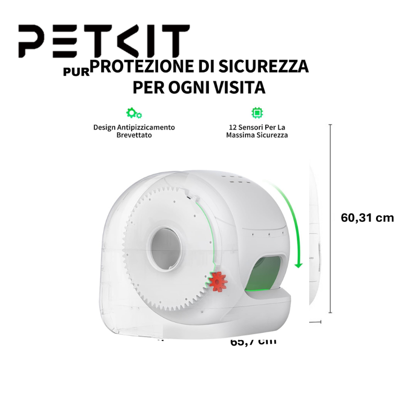 - Sicurezza Avanzata e Design Anti-Perdite: Dotata di 12 sensori integrati e di una struttura anti-pizzicamento brevettata, la lettiera garantisce la massima sicurezza per i tuoi gatti. La base sigillata a 360° previene qualsiasi perdita e semplifica la manutenzione quotidiana. Il funzionamento ultra silenzioso (35-45 dB) garantisce tranquillità anche durante il sonno.