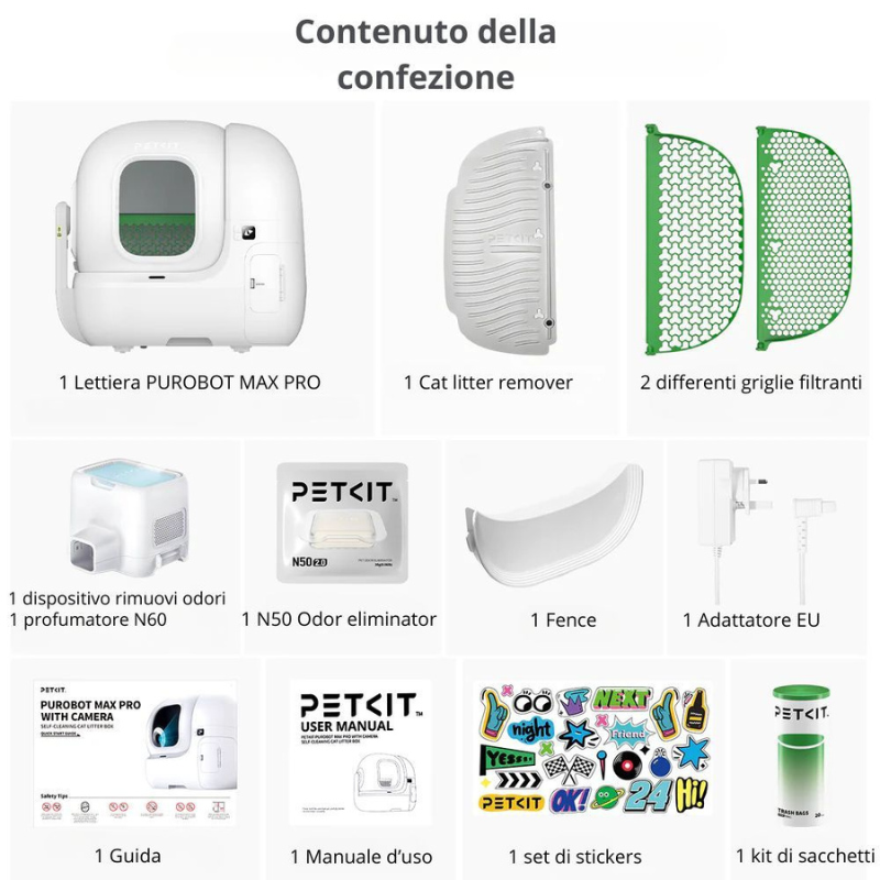 PETKIT PUROBOT MAX PRO Lettiera Automatica per Gatti, Fotocamera AI, 210° Visione Notturna, App WiFi 5GHz, Sistema di Imballaggio Senza Contatto,Monitoraggio Salute e Multi-Gatto, Ingombro 0.354 m²