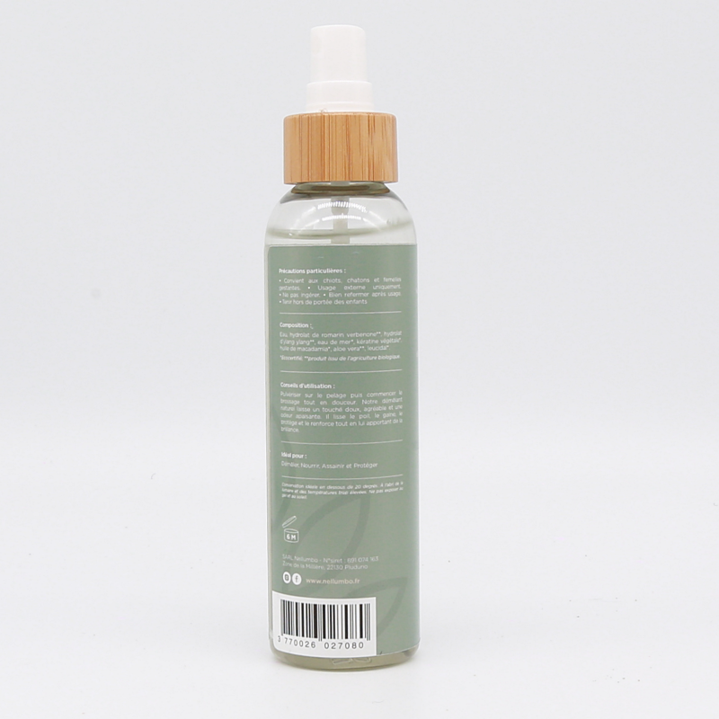 La nostra formula a pH neutro arricchita con Aloe Vera e cheratina vegetale dona naturalmente forza e lucentezza al pelo del tuo compagno proteggendolo! La sua texture lascia una sensazione non grassa e setosa. L’alta concentrazione di minerali e oligoelementi presenti nell’acqua di mare permette naturalmente di: – Ridurre l’infiammazione – Rilassati e rilassati – Ripristinare un normale equilibrio cutaneo. Composizione: Acqua, idrolato di verbenone di rosmarino**, idrolato di ylang ylang**, acqua di mare*, cheratina vegetale*, olio di macadamia*, aloe vera**, leucidale*.